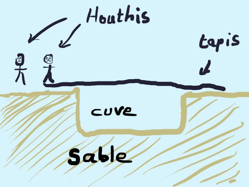 Assez rapidement, les Houthis tombent dans la cuve. La chute n'est pas mortelle, mais la hauteur de la cuve les empêche de ressortir et de commettre d'autres actes délictueux. Il ne reste plus qu'à attendre l'arrivée des forces de l'ordre.